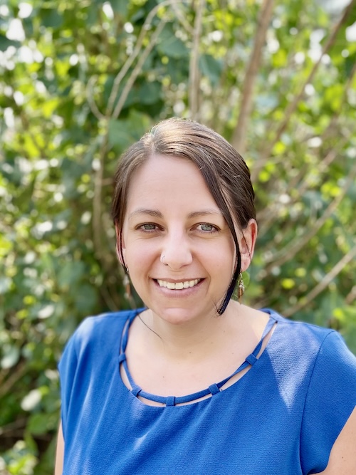 Therapist Emily Cunningham outdoors wearing a light colored shirt